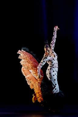 Las coreografías de Rubén Olmo, Úrsula López y el resto del elenco me resultaron de gran belleza visual y muy acertadas en los bailes en grupo. Así, entre palmas, taconeos y bastones a dos manos se dio entrada a un baile por caña muy vistoso. El siguiente palo no supe lo que era hasta mediado el mismo. Y es que ahora se ha puesto muy de moda bailar sin música (bailar el silencio le llamo yo) a lo que suele proseguir una larguísima introducción ad líbitum, hasta que bien avanzada la pieza escuchas el compás y dices: ¡vaya, si son alegrías¡ Y en las susodichas que interpretó Úrsula López con bata de cola clava el compás, pese a meter unos taconeos como metralletas.