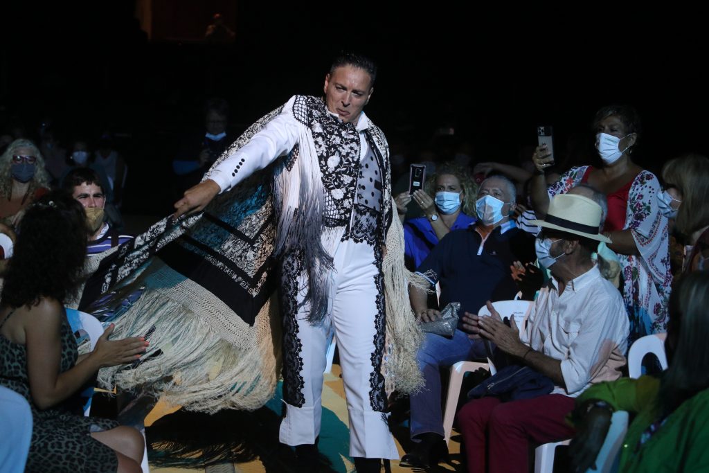 Las palmas, impecables y ajustadas, y las guitarras (Juan José Alba y Javier Ibáñez), ni un respiro y al compás; fandango, martinete, profundo con alma y derroche, seguiriya y tangos. Noche oscura, haz de luz que marca un punto, el público atento, entrada torera por la puerta de sol, entra Antonio, erguido, mentón altivo, traje torero blanquinegro, como en su día vestía Paula, mantón envuelto echao’ a capote, paseíllo entre el público, saluda, levanta el brazo pero no lleva montera, señala al cielo y le dedica unas alegrías con su estilo propio, oreja y aplausos.