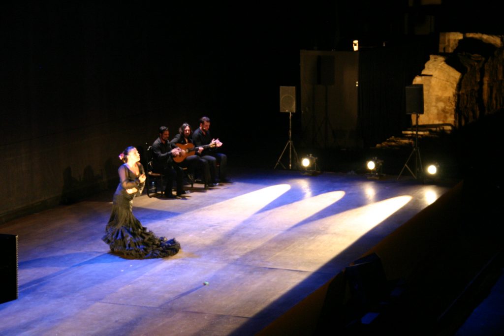 I Ciclo Flamenco Patrimonio. ‘El triunfo de Baco’. Baile y protagonista: Carrete. Cuerpo de baile: Luisa Chicano y Carmen González. Cante: José Manuel Fernández y Canito. Guitarra y dirección musical: Juan Requena. Lugar: Teatro Romano de Málaga. Día: Domingo, 1 de julio de 2018. Aforo: Dos tercios.