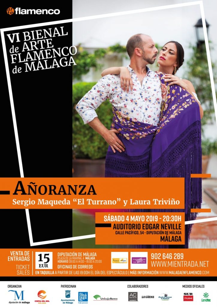 Sergio Maqueda El Turrano y Laura Triviño es la próxima cita de la Bienal de Málaga. Ambos bailaores presentan su espectáculo ‘Añoranza’ el próximo sábado, 4 de mayo, en el Auditorio Edgar Neville a las 20.30 horas.