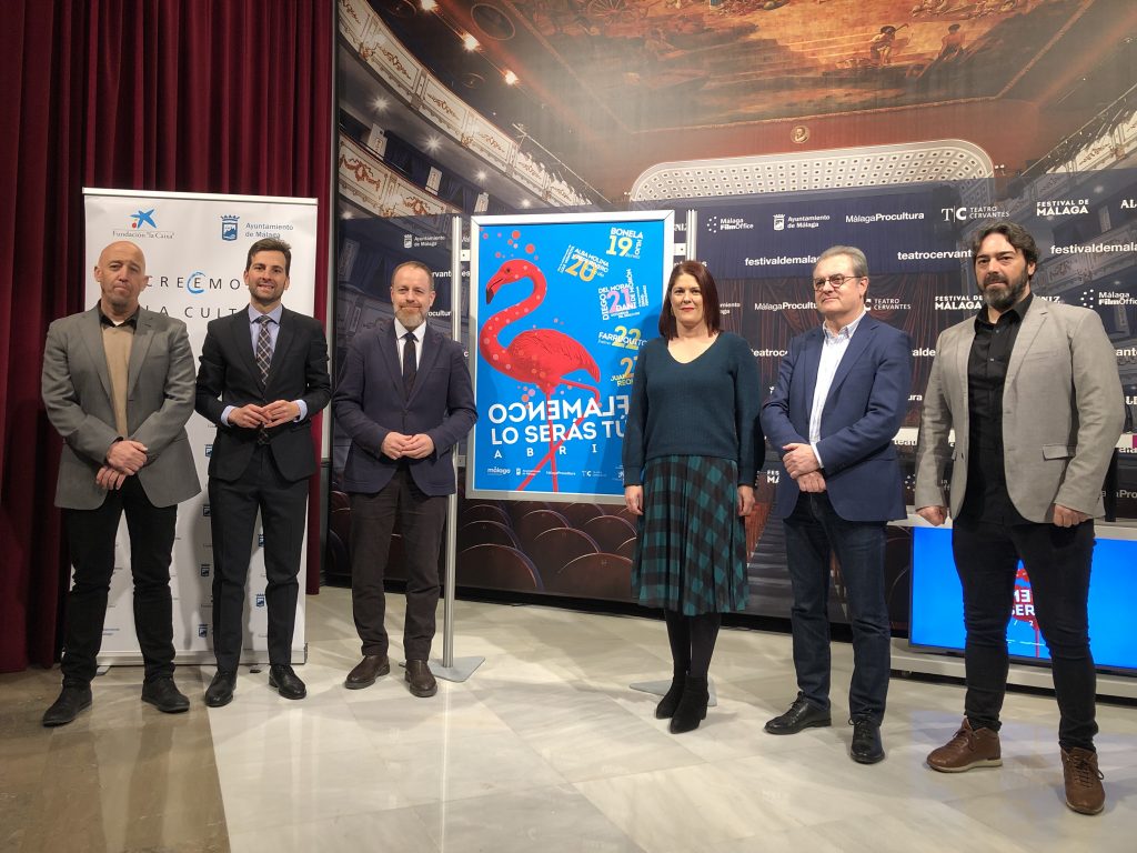 La entrega de 2023 de ‘Flamenco lo serás tú‘ ha sido presentada esta mañana por la concejala de Cultura de Málaga, Noelia Losada, y el director-gerente del Teatro Cervantes, Juan Antonio Vigar, en una rueda de prensa en la que estuvieron presentes los artistas Juan Requena y Bonela Hijo, así como los representantes de la entidad colaboradora, el responsable territorial en Andalucía, Ceuta y Melilla de Fundación La Caixa, Juan Carlos Barroso, y el director del Área de Negocio de Málaga Este de Caixabank, Francisco Ramos.