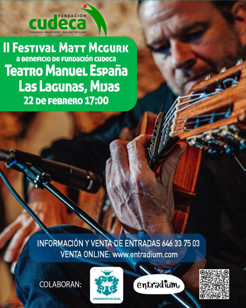 El II Festival Matt McGurk, en recuerdo y homenaje al añorado guitarrista de Liverpool afincado en Fuengirola, será a beneficio de Cudeca. La cita es el domingo 22 de febrero (17.00 horas) en el Teatro Manuel España de Las Lagunas de Mijas.