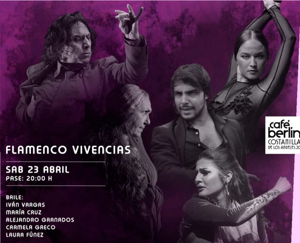 Carmela Greco, Iván Vargas, María Cruz, Alejandro Granados y Laura Fúnez presentan ‘Flamenco vivencias’, espectáculo producido por el Centro de Flamenco y Danza El Lucero, en el Café Berlín de Madrid. La cita es el 23 de abril a las 20.00 horas.