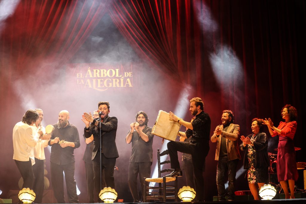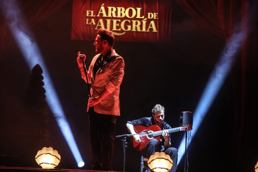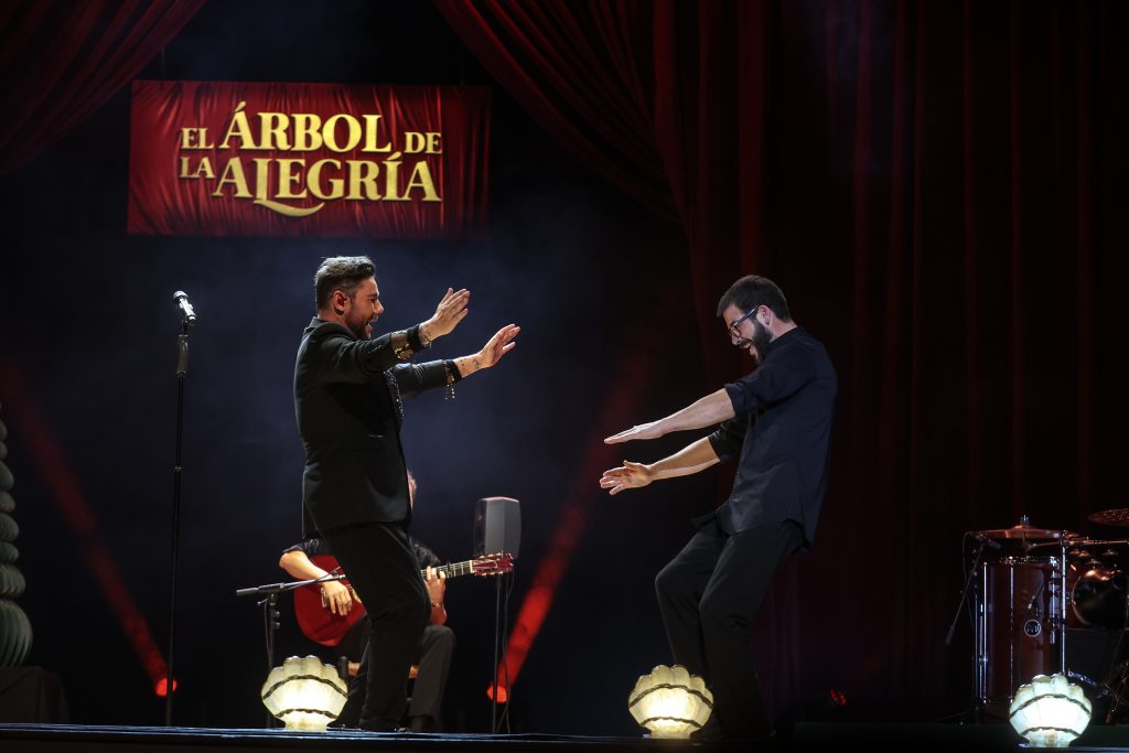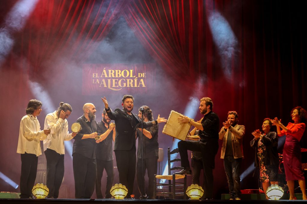 ‘El árbol de la alegría’, nuevo disco de Miguel Poveda. Cante: Miguel Poveda. Guitarra: Jesús Guerrero. Percusión: Paquito González. Palmas: Carlos Grilo. Palmas y coros: Makarines y El Londro. Artistas invitados: Lola y Sole García de Soria, Teresa León y Gonzalo Carmona. Lugar: Auditorio Príncipe de Asturias de Torremolinos. Día: Sábado, 29 de noviembre de 2025. Aforo: Lleno.