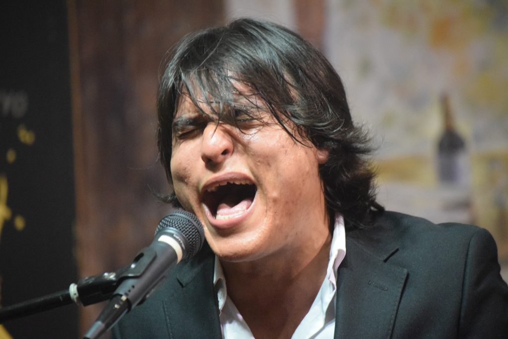 A las 22.00 horas daba comienzo la salida al escenario de los artistas, no sin antes poder disfrutar de una buena selección de viandas en las distintas mesas que se repartían a modo de aforo y que aseguraban iniciar el espectáculo con la necesidad saciada y el espíritu expectante. Samuel Serrano, a sus 25 años, hizo un recital de palos con esa influencia jerezana y ese metal característico del artista, tan rasgao, gitano y profundo; a la vez que primitivo y puro.
