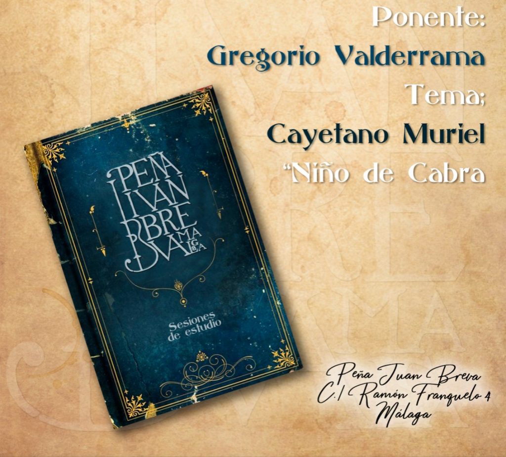 La Peña Juan Breva de Málaga acoge esta tarde (16.00 horas), como cada martes, una sesión de estudio, en este caso con Gregorio Valderrama como ponente y dedicada a Cayetano Muriel Niño de Cabra.
