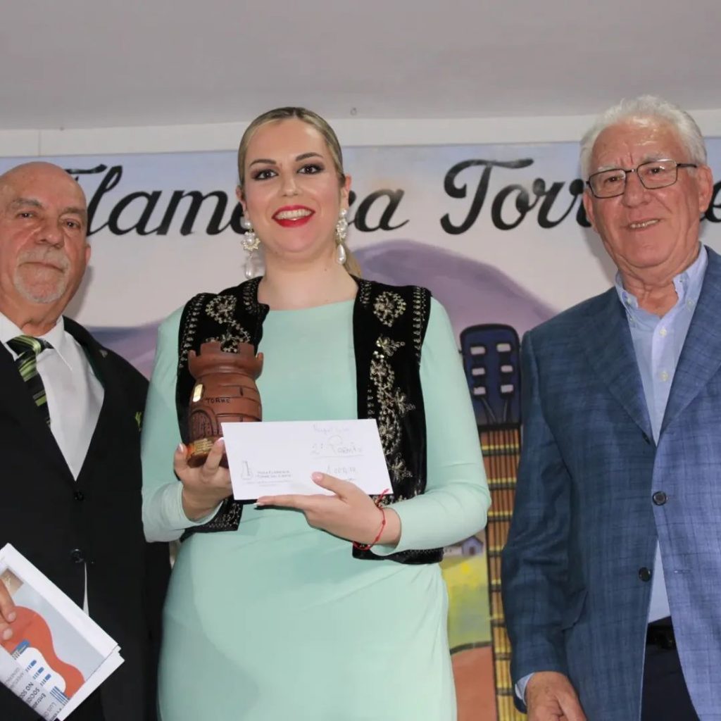 Antonio Sánchez, presidente de la peña anfitriona, tiene en sus manos el sobre del segundo premio, que entregará a Raquel Salas, cantaora que ganó el Concurso de la Federación Provincial de Peñas Flamencas de Málaga en 2024. Le van a corresponder 1.000 euros y trofeo. Y se remata la ceremonia con la entrega por parte del alcalde, Joaquín Vilanova, del primer premio, que será para Iván Chaskío: 2.200 euros, trofeo y actuación en la edición de 2025 del Festival Torre del Cante.