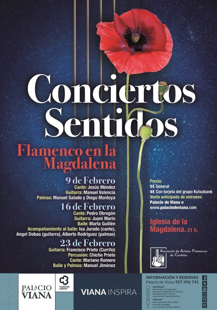 Jesús Méndez abre hoy el ciclo »Conciertos sentidos’ en la iglesia de La Magdalena de Córdoba, con Manuel Valencia a la guitarra y Manuel Salado y Diego Montoya a las palmas. El 16 de febrero, turno para el baile de Marta Guillén, y el día 23, para la guitarra de Francisco Prieto ‘Currito’.