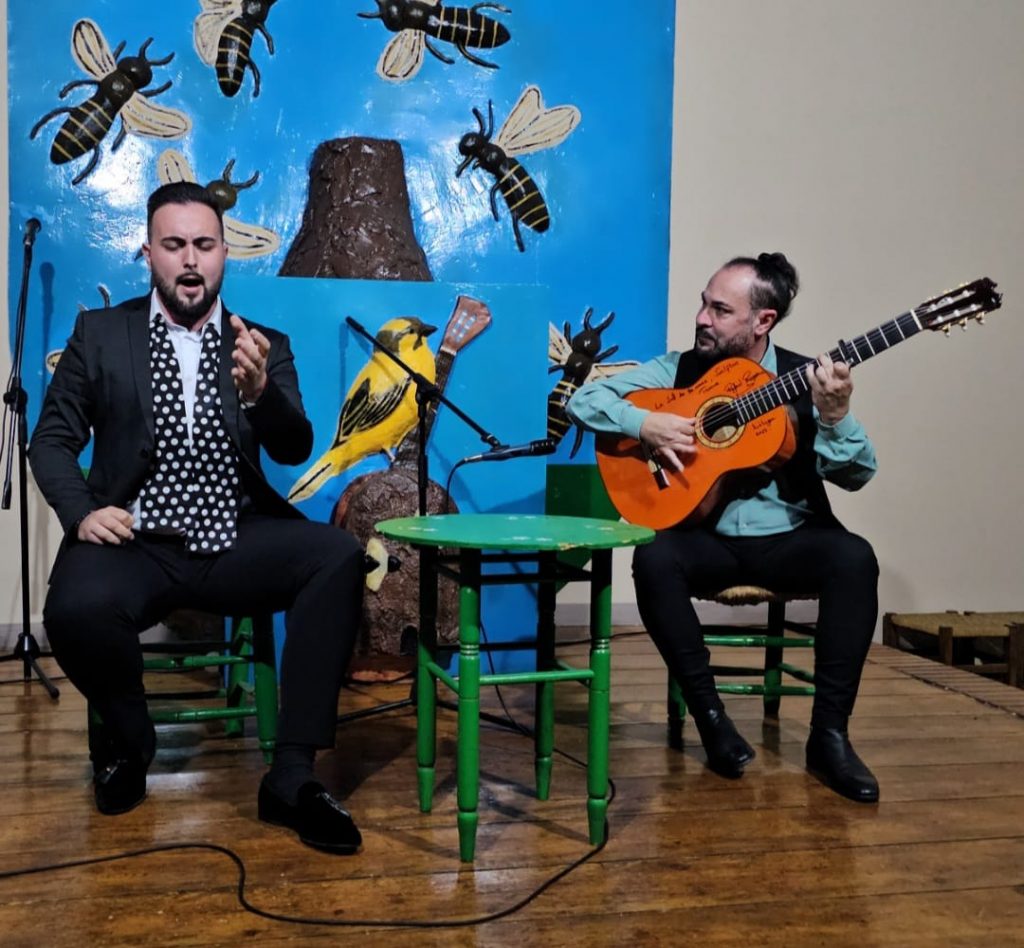 No podía faltar un guiño a esta tierra, y aquí en Colmenar, ‘Capital de los Montes’, se van a escuchar los verdiales, primero de los Montes y luego de Comares. «Si Dios me diera el poder// de penetrar en tu mente// y así podría saber// lo que tu boca me miente,// juegas con mi querer». Sigue el aire festero con los tangos, en un recuerdo a Juanito Villar. Arte y compás al cante y a la guitarra.
