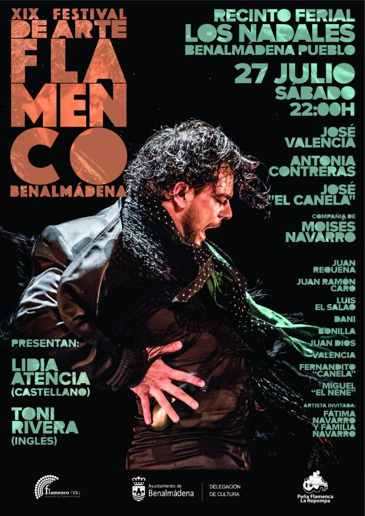 Una mujer (Lidia Atencia) presentará por vez primera el Festival, que por tercer año consecutivo se hace en español y en inglés (parte de la que se encargará Toni Rivera). Organizado por Flamenco Nau, con la colaboración de la Peña Flamenca La Repompa y la Delegación de Cultura del Ayuntamiento de Benalmádena, se ha consolidado como una de las citas ineludibles del panorama flamenco de la provincia de Málaga.