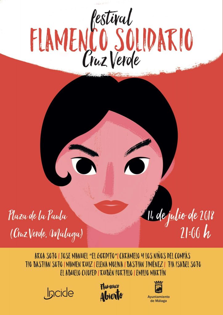 La Cruz Verde, uno de los barrios típicamente flamencos de Málaga, celebra hoy un Festival Solidario en el que participan algunos de los artistas nacidos en él, como la octogenaria Isabel Soto, su hijo Bastián Soto, y su nieta Aroa Soto, de la dinastía de los Bizcos. Junto a ellos, Mamen Ruiz, al cante; Rubén Portillo, al toque; y Elena Molina y Bastián Jiménez, al baile; entre otros.