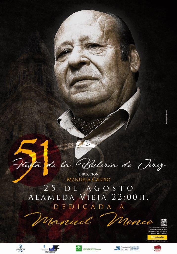 La LI Fiesta de la Bulería de Jerez homenajea al malogrado Manuel Moneo. El evento, que tendrá lugar mañana, 25 de agosto, se desarrollará en tres partes: una primera (‘Jerez canta a Manuel Moneo’) en la que intervendrán Manuel Moneo ‘Barullo’, Luis Moneo, La Macanita, Jesús Méndez y Luis El Zambo, al cante; Diego del Morao, Manuel Valencia, Miguel Salado y Juan Manuel Moneo, a la guitarra; y Manuela Carpio, que dirige el acto, al baile.
