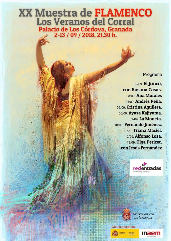 El ciclo Los Veranos del Corral de Granada alcanza su vigésima edición con artistas de la talla de las bailaoras La Moneta, que actúa el 9 de septiembre, y Olga Pericet, el día13. El Junco abrió ayer la cita granadina y hoy es el turno de Ana Morales.