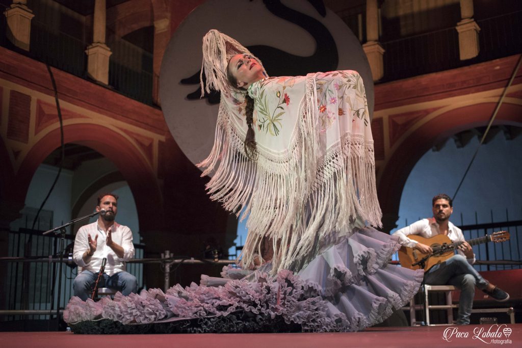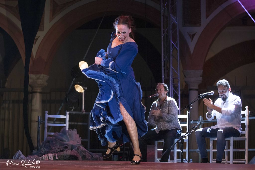 Canales da un zapatazo con mando en plaza e introduce a la bailaora cordobesa, a la que cede su sitio, pese a ser la artista invitada, en una clara muestra de su generosidad, la de los grandes, por bulerías. Vuelve Canales por seguiriyas, con David El Galli, al cante, y Víctor El Tomate, al toque. Se siente a gusto y lo transmite. Arranca los aplausos del respetable, que no deja de jalearlo, reconociendo así el arte de uno de los grandes de la danza y del baile flamenco en particular. Monumental, apoteósico. Turno ahora para La Talegona, ataviada con bata de cola y mantón, por alegrías. Grácil al inicio y contundente después. Con qué cuidado se desprende del mantón en tanto que agarra las castañuelas con brío…