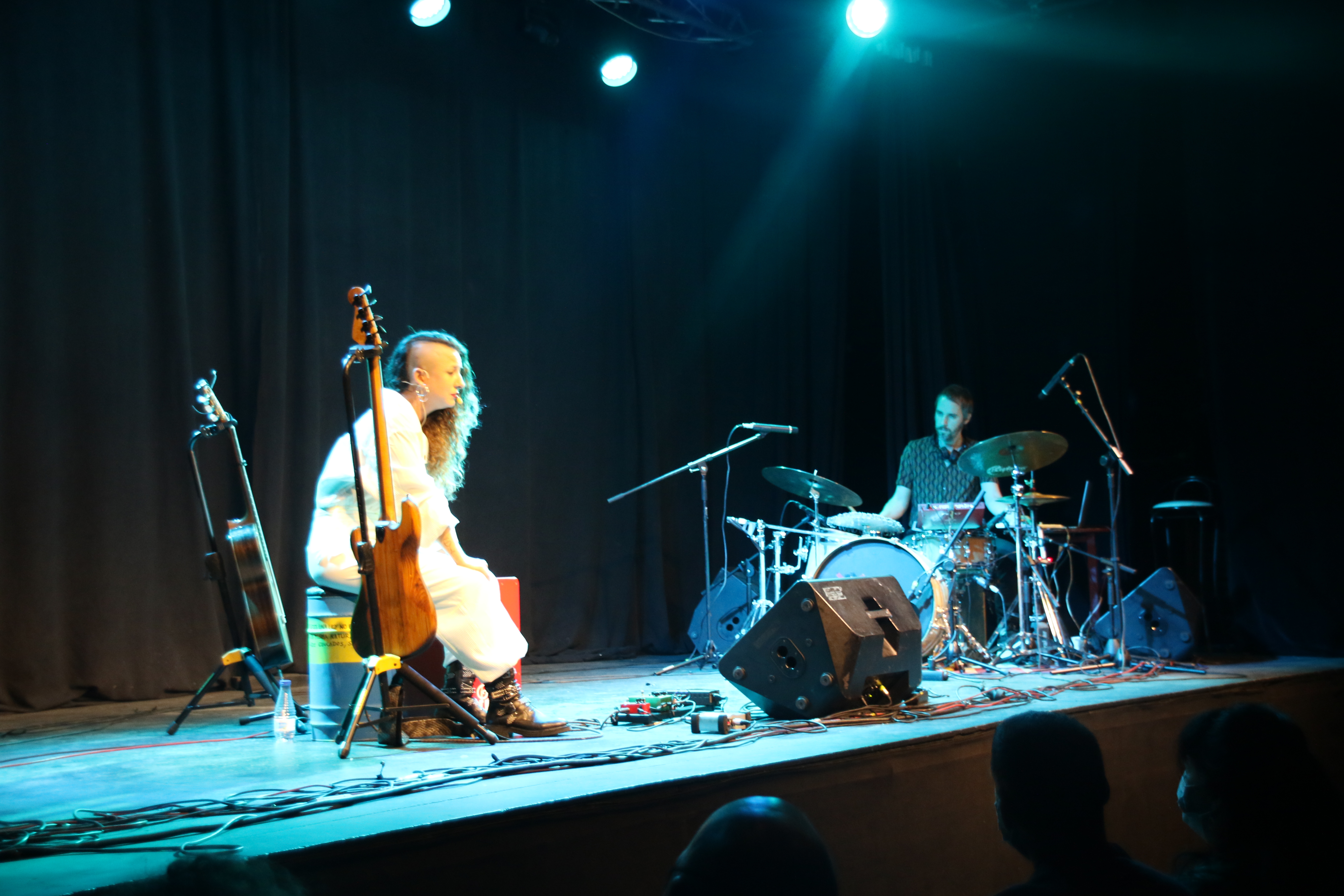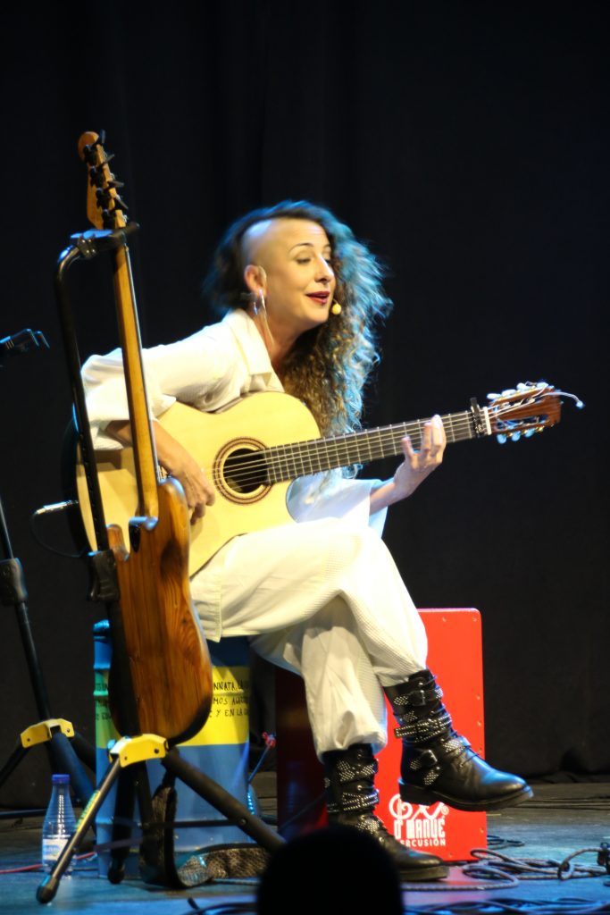 «Teníamos muchas ganas de hacer un dúo. Esta tierra me da siempre muy buena vibración», comenta antes de cantar por tangos, a bajo y percusión, pero a lo flamenco, como diría el gran Ortiz Nuevo. Los vellos como escarpias.