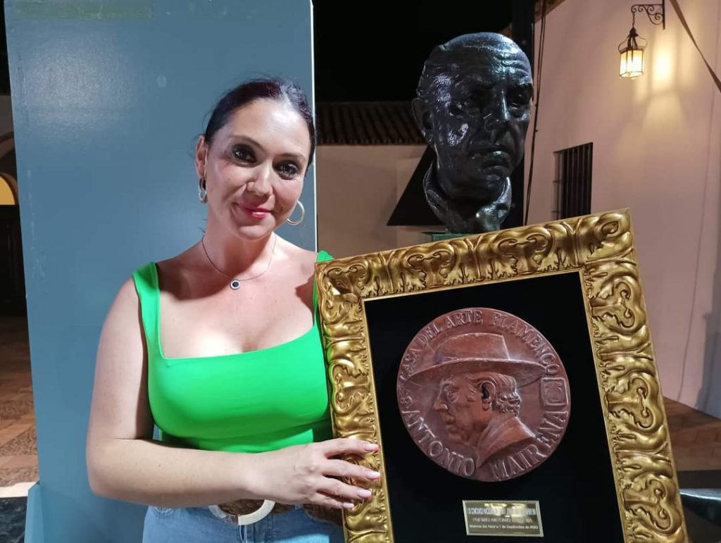 La onubense María González recibió el premio Manuel Mairena 2023. El Concurso mairenero homenajeó en esta edición al compañero Manuel Curao, al que se le impuso la insignia de oro de la Casa del Arte Flamenco.