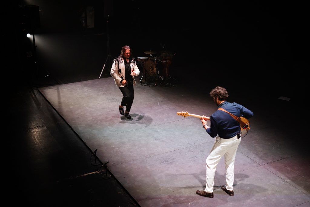 El elenco estaba formado por Juanma Montoya al bajo flamenco, que combina técnica y sensibilidad. No solo domina el instrumento como si de una guitarra flamenca se tratara, sino que sabe cómo sacarle los matices y crear conexión con el público.