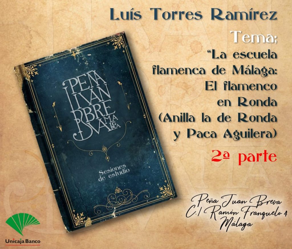 La Peña Juan Breva de Málaga acoge mañana (18.00 horas), como cada martes, una sesión de estudio, en este caso con Luis Torres como ponente, que abordará la segunda parte de su conferencia ‘El flamenco en Ronda, con Anilla la Gitana y Paca Aguilera’.