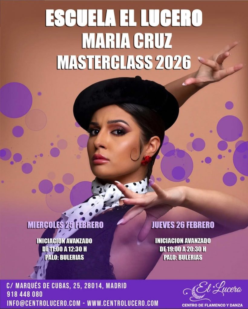 María Cruz impartirá una masterclass en el Centro de Flamenco y Danza El Lucero de Madrid. Será los días 25 y 26 de febrero.