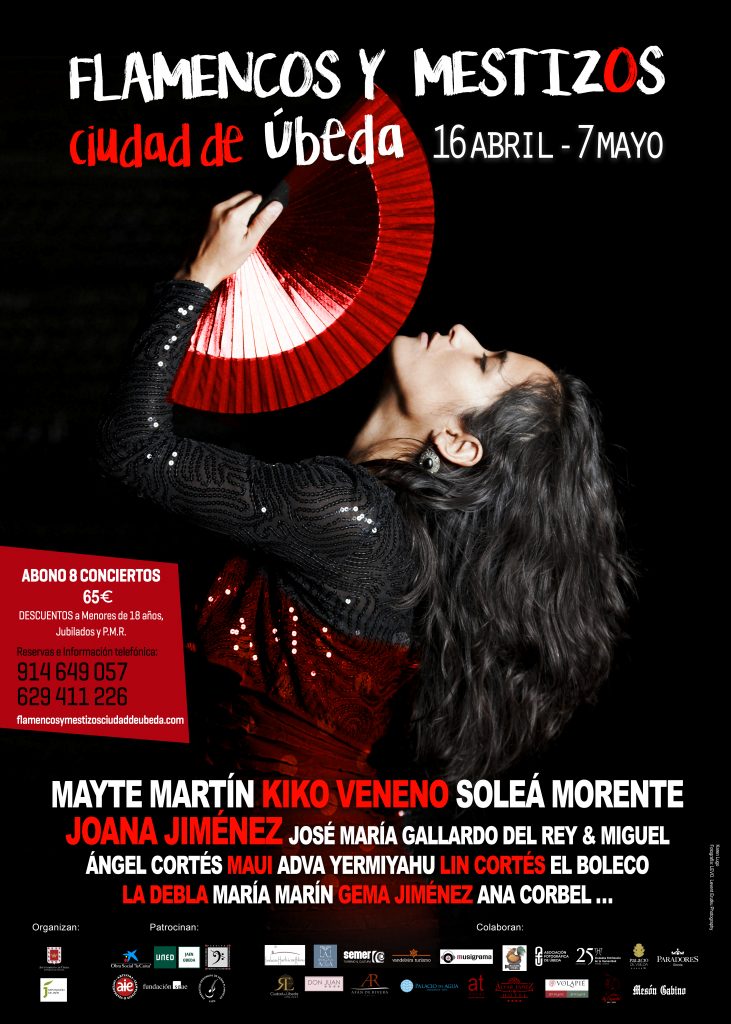 Paco Ortega, conocido productor y cantante, creó en 2018 en su ciudad natal, Úbeda, el ciclo ‘Flamencos y Mestizos’, que ya se celebraba en Madrid bajo el auspicio de la SGAE. La cita ubetense, que cumple por tanto su tercera edición, se desarrollará del 16 de abril al 7 de mayo y contará con artistas destacados como Mayte Martín, El Boleco, Gema Jiménez, Kiko Veneno, Joana Jiménez, Soleá Morente, Miguel Ángel Cortés con José María Gallardo del Rey o Lin Cortés, entre otros.