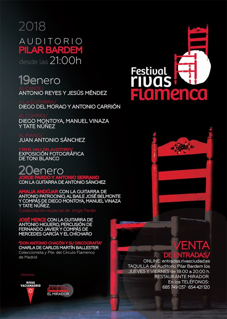 José Mercé, Jesús Méndez y Antonio Reyes encabezan el Festival Flamenco de Rivas Vaciamadrid, que acoge el auditorio Pilar Bardem los días 18 y 19 de enero de 2018.
