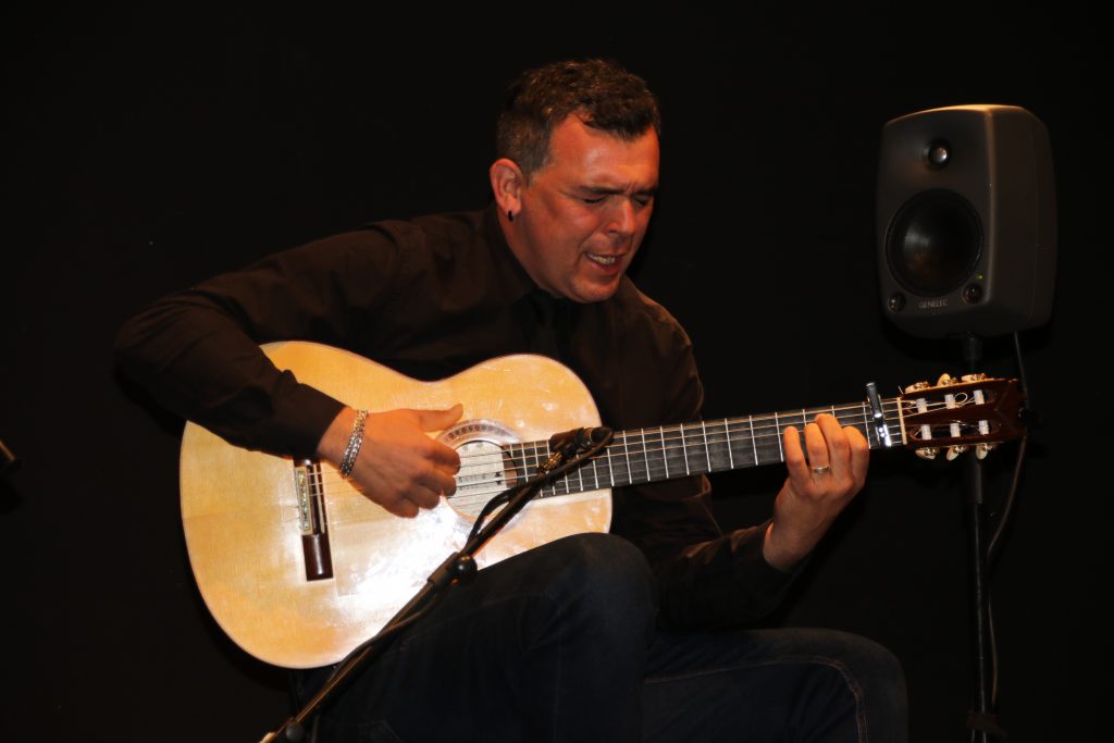 Turno para otro gran guitarrista con raíces trianeras afincado en Fuengirola, Hugo Dogma, felizmente casado con la cantaora fuengiroleña Ana Serrano, con la cual cuenta para su actuación.