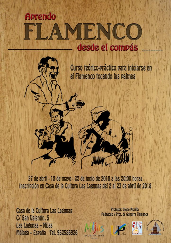 La Concejalía de Cultura del Ayuntamiento de Mijas ofrece el curso ‘Aprendo flamenco desde el compás’, impartido por Diego Morilla, guitarrista y profesor de guitarra en la Casa de la Cultura de Las Lagunas, en Mijas-Costa, los días 27 de abril, 18 de mayo y 22 de junio. El plazo de inscripción termina el 23 de abril.