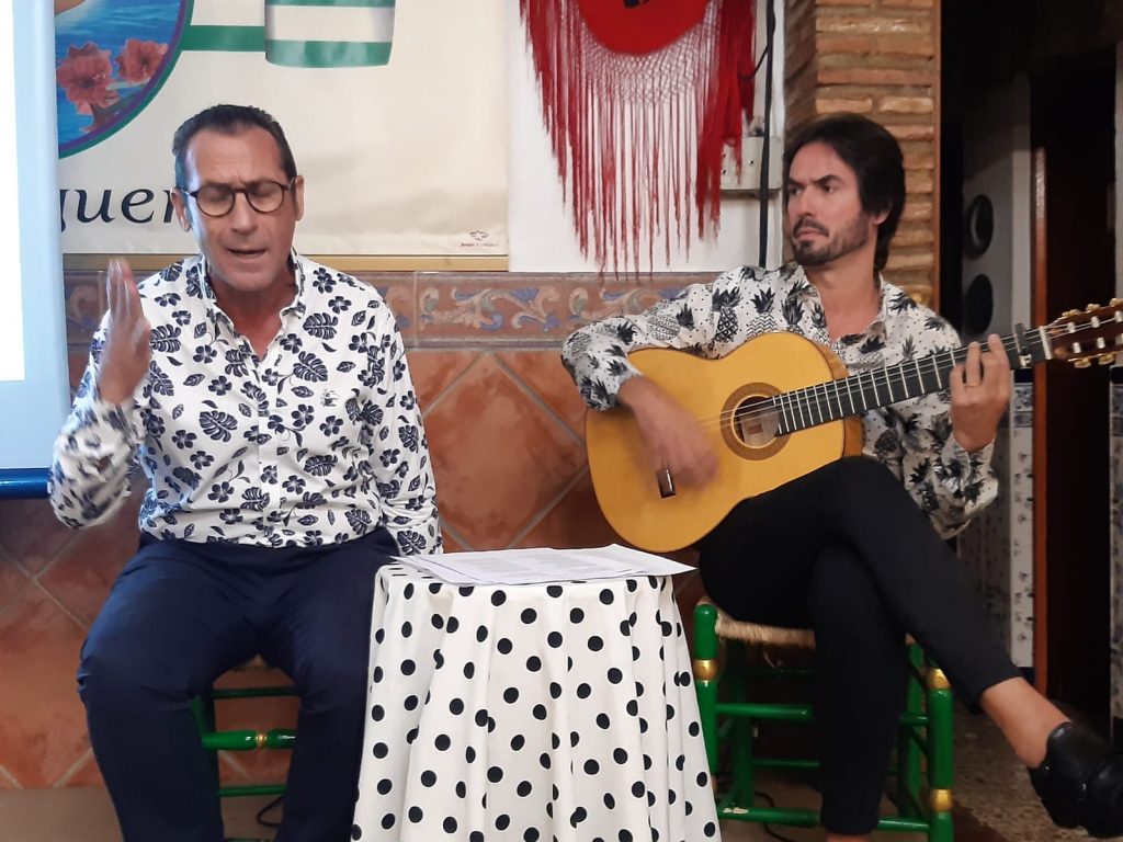Conferencia Ilustrada sobre los Fandangos de Huelva. Conferenciante: Sebastián Fuentes. Cante: José García Vílchez El Petro. Guitarra: Carlos Haro. Lugar: Peña La Malagueña de Málaga. Día: Sábado, 10 de octubre de 2020. Aforo: Lleno.