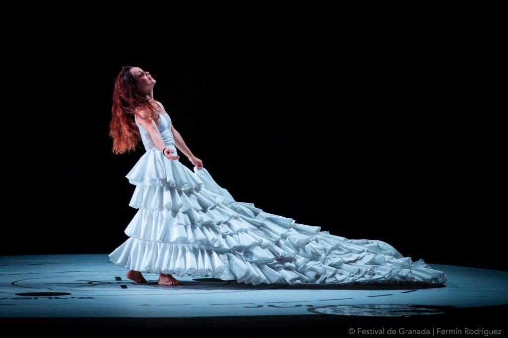 68 Festival de Música y Danza de Granada. ‘Un cuerpo infinito’. Baile, dirección artística y coreografías: Olga Pericet. Cante: Inma la Carbonera y Miguel Lavi. Guitarra: Antonia Jiménez. Percusión: Paco Vega. Trompeta: Jorge Vistel. Cuerpo de baile: Paula Ruiz y Conchi Espejo. Cuarteto Coral: Elvia Sánchez, Elena Sánchez, Simón Drago y Mario Méndez. Lugar: Teatro Isabel la Católica de Granada. Día: Jueves, 4 de julio de 2019. Aforo: Casi lleno.