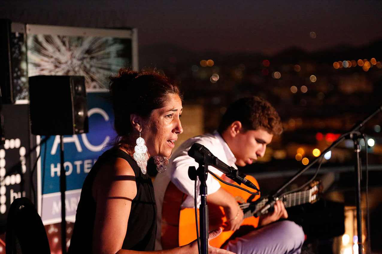 IV Bienal de Arte Flamenco de Málaga 2015. ‘Flamenco de Altura’. Cante: Paqui Ríos. Guitarra: Rubén Lara. Lugar: Ático-terraza del hotel AC de Málaga. Día: Miércoles, 29 de julio de 2015. Aforo: Lleno.
