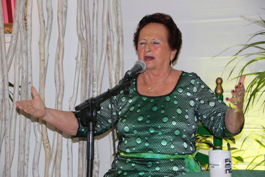 Reconocida saetera, ha logrado primeros premios en Marbella y Torremolinos, entre otros lugares. El escritor Miguel Moreno Puertas dijo de ella: «Canta como un jilguero, hace vibrar corazones, que nos eleva hacia el cielo». Y así lo pudo comprobar el público cuando, a continuación, cantó por granaínas. Dijo adiós por fandangos, cómo no, de su admirado Vallejo, que borda como nadie. Una delicia.