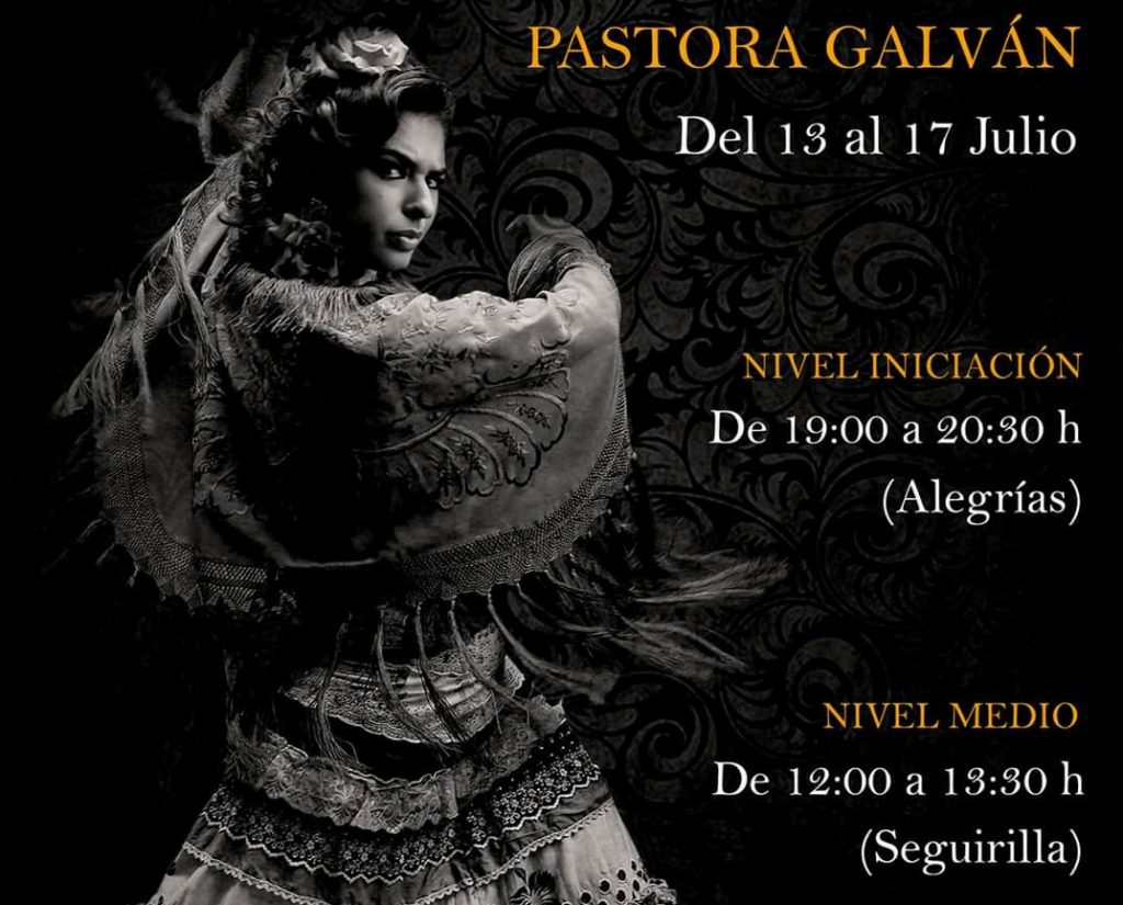 Pastora Galván toma hoy el relevo de Antonio Canales, que impartió su magisterio la semana pasada, en los Veranos Flamencos del Centro de Flamenco y Danza El Lucero de Madrid, que cuenta con un extraordinario elenco de artistas, como los citados. La bailaora sevillana realizará dos cursos desde hoy hasta el viernes (el último día con músicos en directo) de alegrías (iniciación, de 19.00 a 20.30 horas) y seguiriyas (nivel medio, de 12.00 a 13.30 horas).
