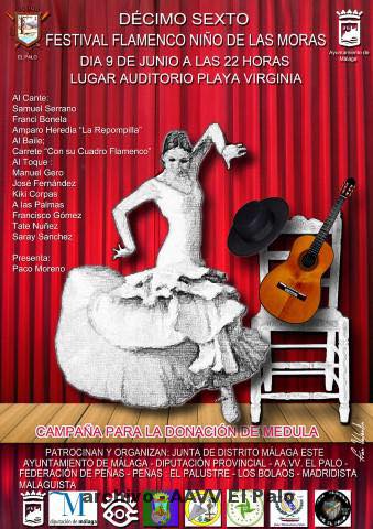 El Festival Flamenco Niño de las Moras cumple su XVI edición con destacados artistas mslagueños, Francis Bonela y Amparo Heredia La Repompilla, al cante, y Carrete, al baile. Encabeza el cartel el chipionero Samuel Serrano, joven cantaor revelación. La cita es este sábado, 9 de junio en la barriada malagueña de El Palo.