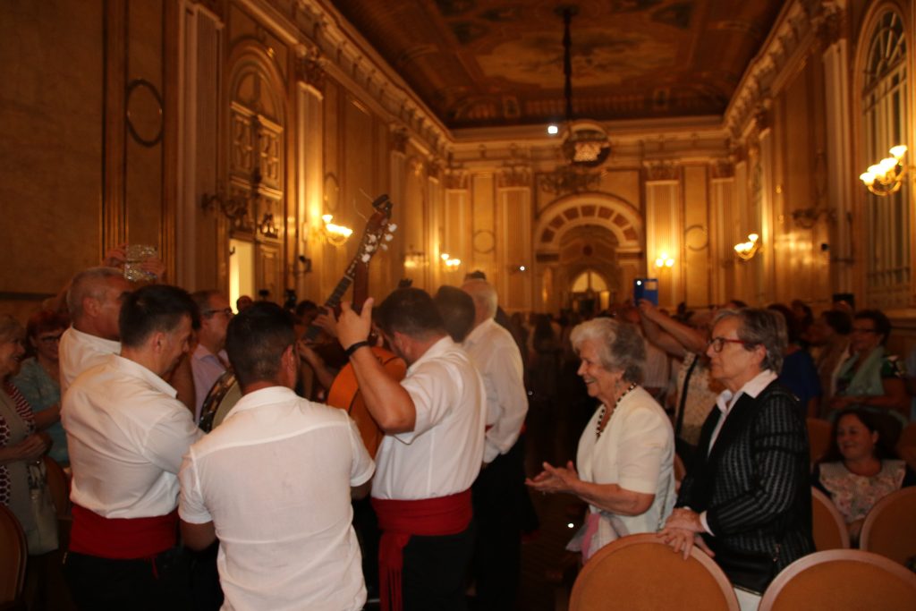 Pendón destacó que esta panda es la más laureada y presentó al octogenario Paco el de Maroto, que tocó el violín y cantó, como «el festero vivo más antiguo, que ha conocido la parte íntima de esta manifestación artística y también los verdiales en teatros en toda España y en el extranjero».
