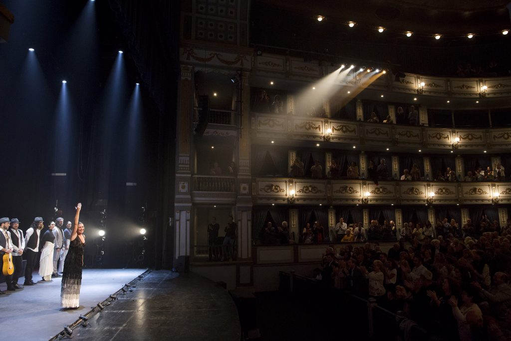 Y fin de fiesta con toda la compañía donde la protagonista invita a casi todos los componentes a darse una pataita; en definitiva, un espectáculo perfectamente organizado, hecho desde el alma y de corazón. Lo demuestra el hecho de que Sara Baras ha logrado un lleno absoluto en el Cervantes del 22 al 26 de noviembre.