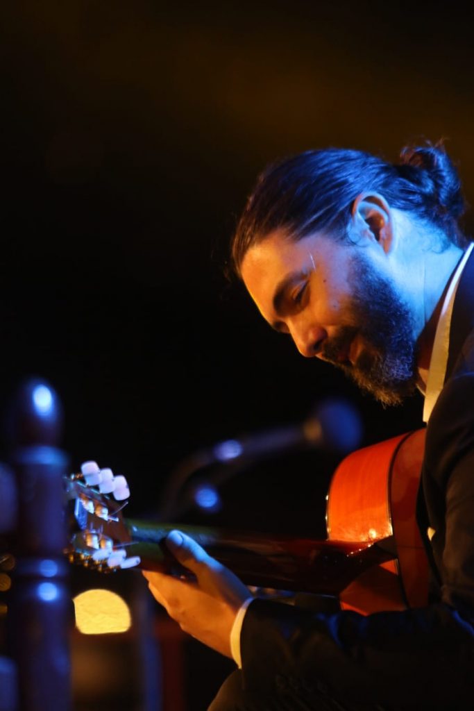 VII Bienal de Málaga. ‘Sonamundo’. Guitarra: Fran Moya. Cante: Chelo Soto, Rocío La Boterita y Miguel Astorga. Baile: Cristóbal García. Percusión: Javier Rabadán. Baile: Cristóbal García. Flauta: Alejandro Escalera. Bajo: Paco Peña. Palmas: Ramón Heredia. Lugar: Explanada del Cerro de San Cristóbal en Vélez-Málaga (Málaga). Día: Jueves, 26 de agosto de 2021. Aforo: Lleno.