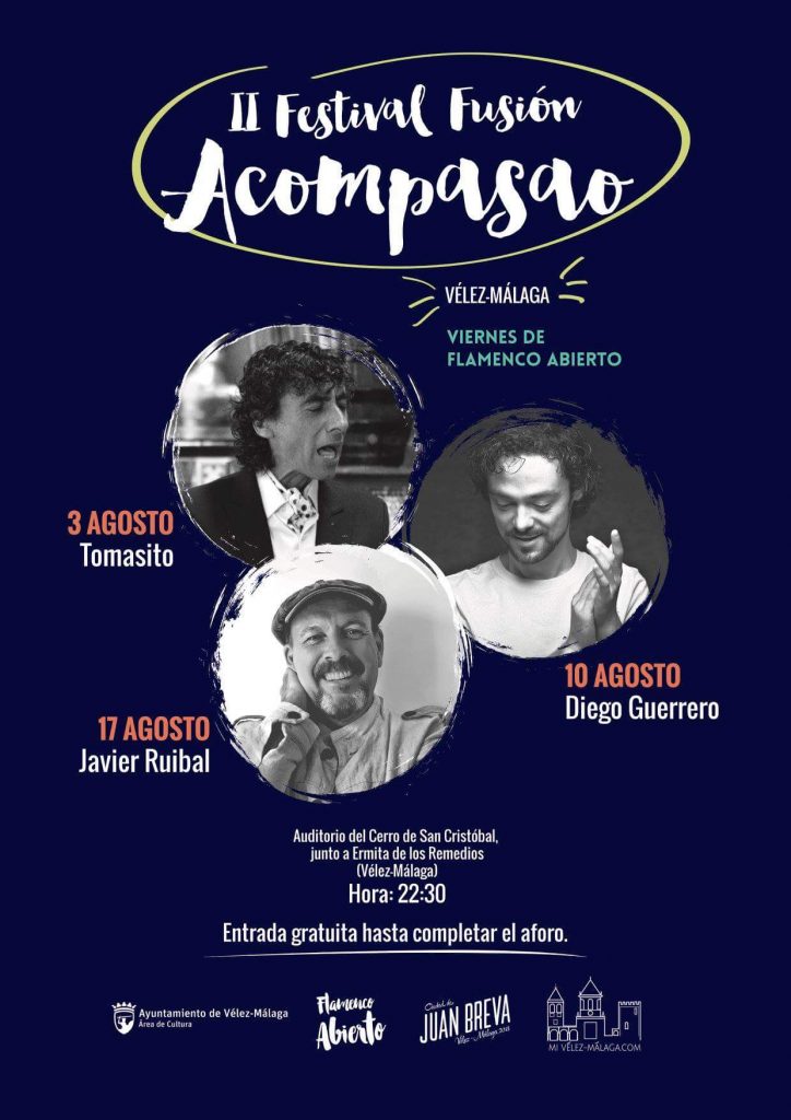 Flamenco Abierto Axarquía, iniciativa en pro de lo jondo en la citada comarca malagueña, organiza en colaboración con el Ayuntamiento de Vélez-Málaga, el II Festival Fusión Acompasao, en el que se podrá ver a Tomasito (3 de agosto), Diego Guerrero (10 de agosto) y Javier Ruibal (17 de agosto). La entrada es libre hasta completar aforo.