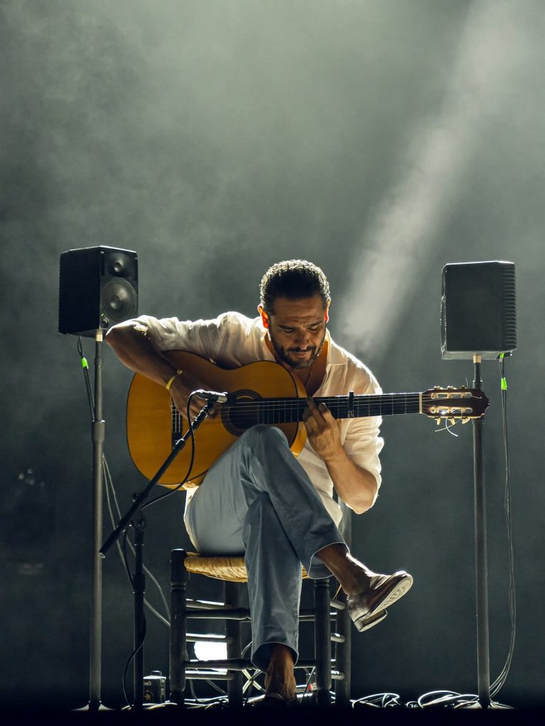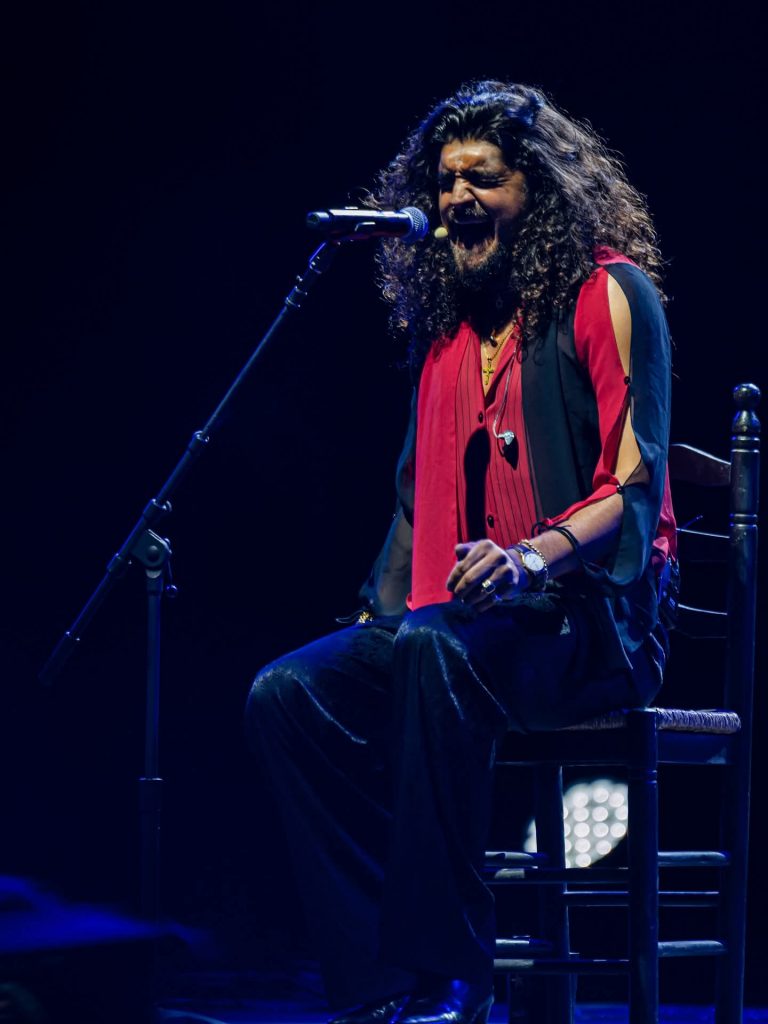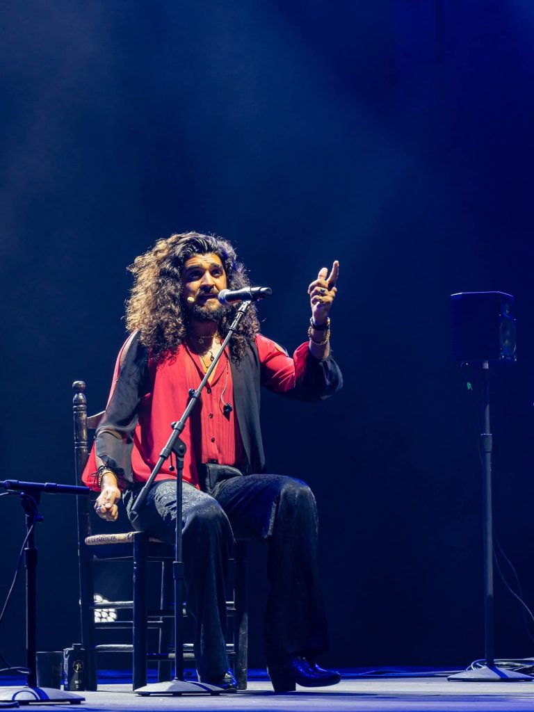 Y un paso más en su trayectoria, acompañarse él mismo a la guitarra: «Estoy muy nervioso. Es la primera vez en mis años de carrera que lo voy a hacer. Yo, de chiquitito en la casa de mis padres, en la escalera con reverb natural, me ponía a cantar. Voy a hacer un cante que yo hacía en mi casa. Una balada del tío Zíngaro, Lola María. «Digo lo mismo, si hay algún guitarrista…», bromea.
