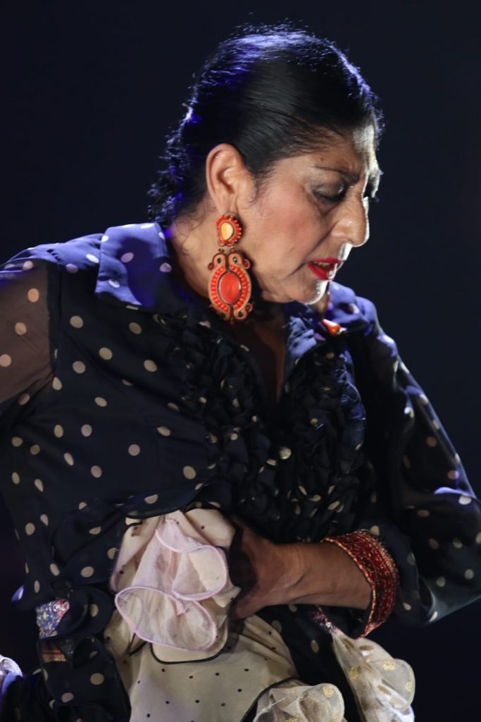 El espectáculo se inició con la cantaora jerezana, todo fuerza y temperamento, por seguiriyas, para ir calentando el ambiente, y Manuela, ya con 63 años, como los buenos vinos que con el tiempo cogen un estilo y aroma propios. Entró en escena precedida de sonidos zíngaros de violín, que recordaban a carromatos y fuegos junto a los arroyos, para ejecutar, acto seguido, una bulería con poses gitanas de Romero de Torres y marchar después de unos toques de guitarra bien ejecutados.