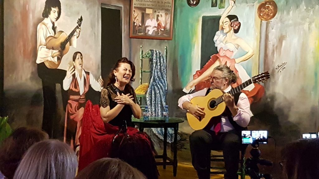 El pasado sábado 12 de octubre, asistimos a una preciosa tarde flamenca en la Peña Flamenca Rincón del Cante, de la barriada Las Castañetas, en Campanillas, Málaga. El buen cante, el muy buen gusto y el saber estar en un escenario lo pusieron a la par la malagueña Antonia Contreras y el barcelonés de nacimiento Juan Ramón Caro; el público puso lo demás: el agradecimiento a lo bien hecho, a la belleza, la generosidad, la perfección, el talento artístico y la satisfacción de lo que se hace con amor, mucho trabajo y oficio. Todo ello, con un silencio espectacular, que ya lo quisieran para sí Rafael Nadal o Roger