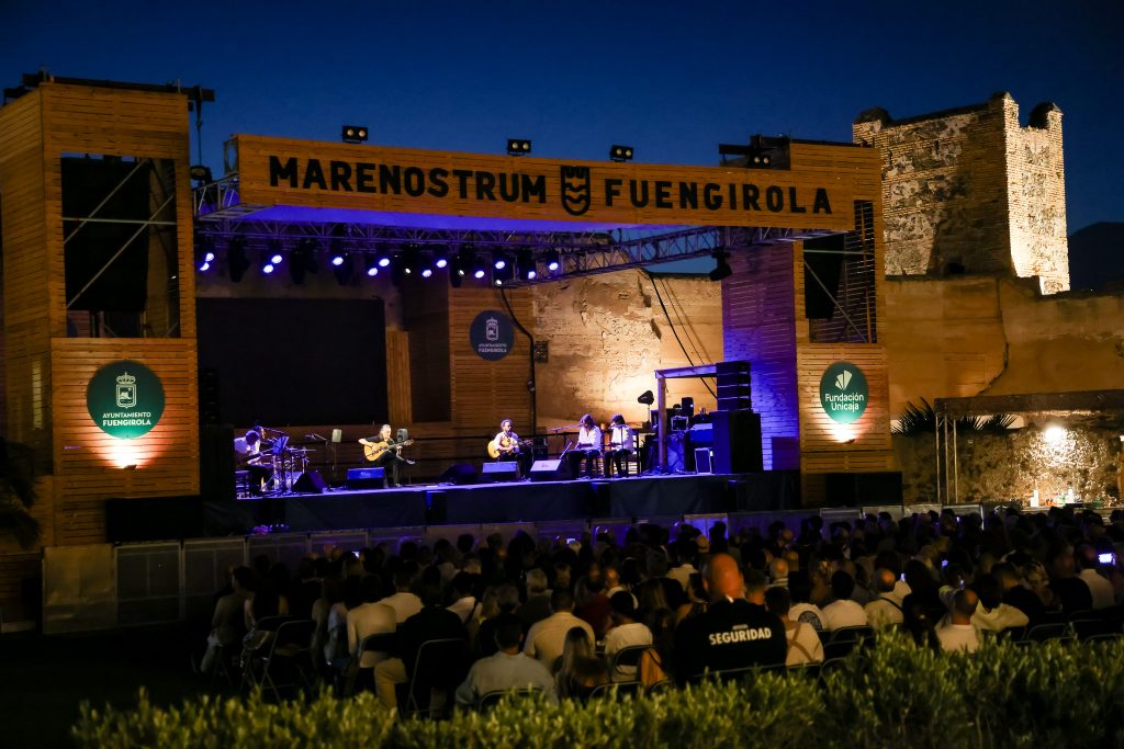 Marenostrum Fuengirola. Guitarra: Vicente Amigo. Segunda guitarra y palmas: Añil Fernández. Percusión: Paquito González. Palmas y coros: Los Makarines. Bajo: José Manuel Posada Popo. al bajo. Flauta: Francisco Javier Márquez. Lugar: Escenario Fundación Unicaja. Interior del Castillo Sohail de Fuengirola. Día: Jueves, 31 de julio de 2025. Aforo: Lleno.
