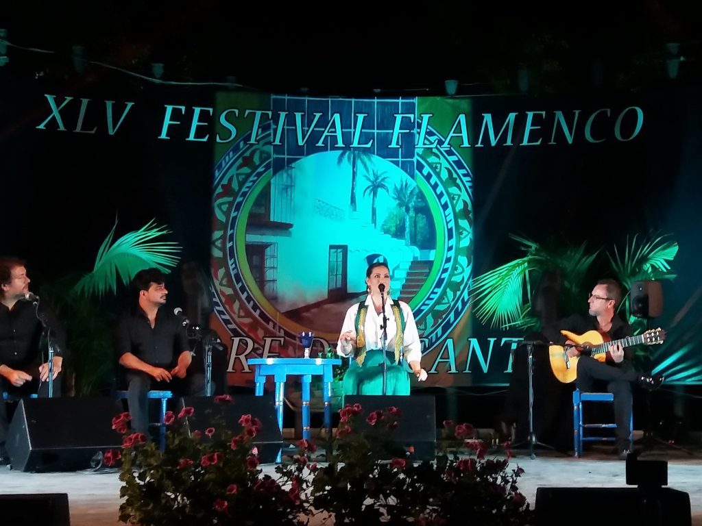 Marina Heredia fue la embajadora de la noche, no en vano, en su trayectoria profesional, ha paseado su arte por diferentes latitudes. Como anécdota, hay que recordar que ha cantado en inglés o alemán. Acompañada por la guitarra de Bolita y un dúo de palmeros, deleitó al respetable por alegrías y malagueñas; destacando por tangos y fandangos del Albaicín. Su voz está llena de quiebro melodioso, una esmeralda que crece por presión y que puso broche por bulerías a una actuación completa de armonías.