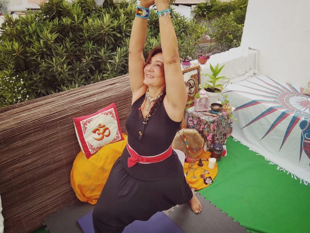 Tras diecisiete años practicando yoga y cuatro como profesora, la malagueña asegura que ha podido comprobar en sí misma cómo ambas disciplinas producen efectos semejantes: “En mis clases y mis prácticas, me hacía brotar una sensación parecida como cuando escuchaba flamenco y bailaba; e incluso con un fondo de música flamenca, me ponía a hacer mis asanas de yoga y las unía con mi sentir flamenco. Esto me hacía liberar y sonreír, por lo que he notado en mí misma lo terapéutico de ambas disciplinas”.